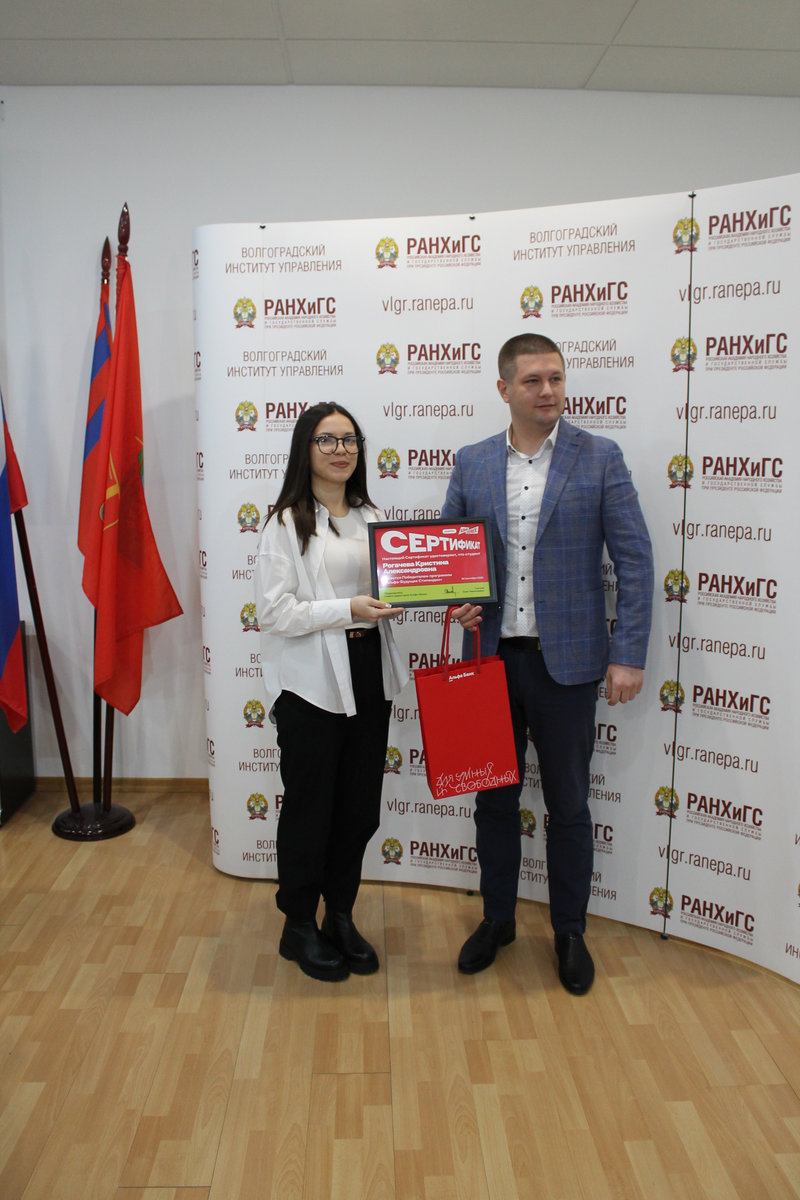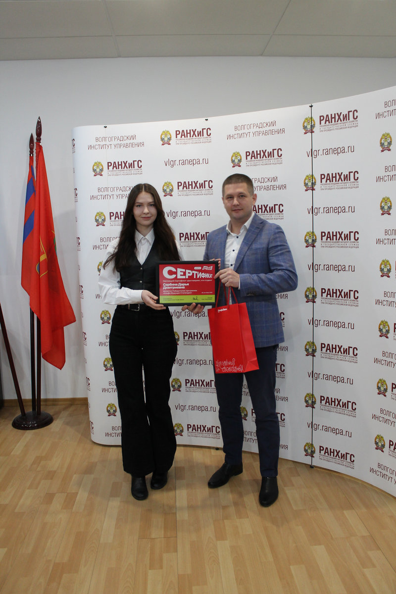 В торжественной обстановке 15 декабря на Ученом совете Волгоградского института управления - филиала РАНХиГС региональный управляющий Альфа-Банка по Волгоградской области Куряков Илья Александрович вручил победителям дипломы и памятные призы. Он также отметил важность сотрудничества банка и Президентской академии в Волгограде и проанонсировал возможности участия в новых конкурсах платформы «Альфа-Будущее» в 2026 году, свое участие в которых следует подтвердить до 25 декабря 2025 года.