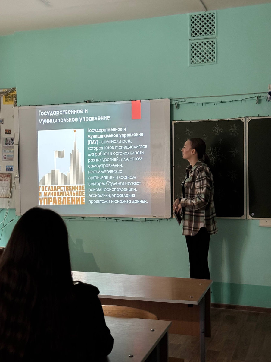 Старшеклассники активно включились в беседу: задавали вопросы о вступительных испытаниях, условиях обучения и перспективах трудоустройства. Отдельный интерес вызвали современные профессии, связанные с государственным управлением, цифровыми технологиями и предпринимательством.