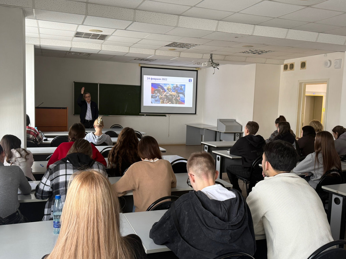 Лекция на важнейшую и актуальную тему была проведена для потока БкУ-200. Тема — смысл и ход СВО. Разговор состоялся очень эмоциональный, слышались в зале слова и о боли за потери, и о гордости за тех, кто на передовой, и о надежде на скорую Победу.