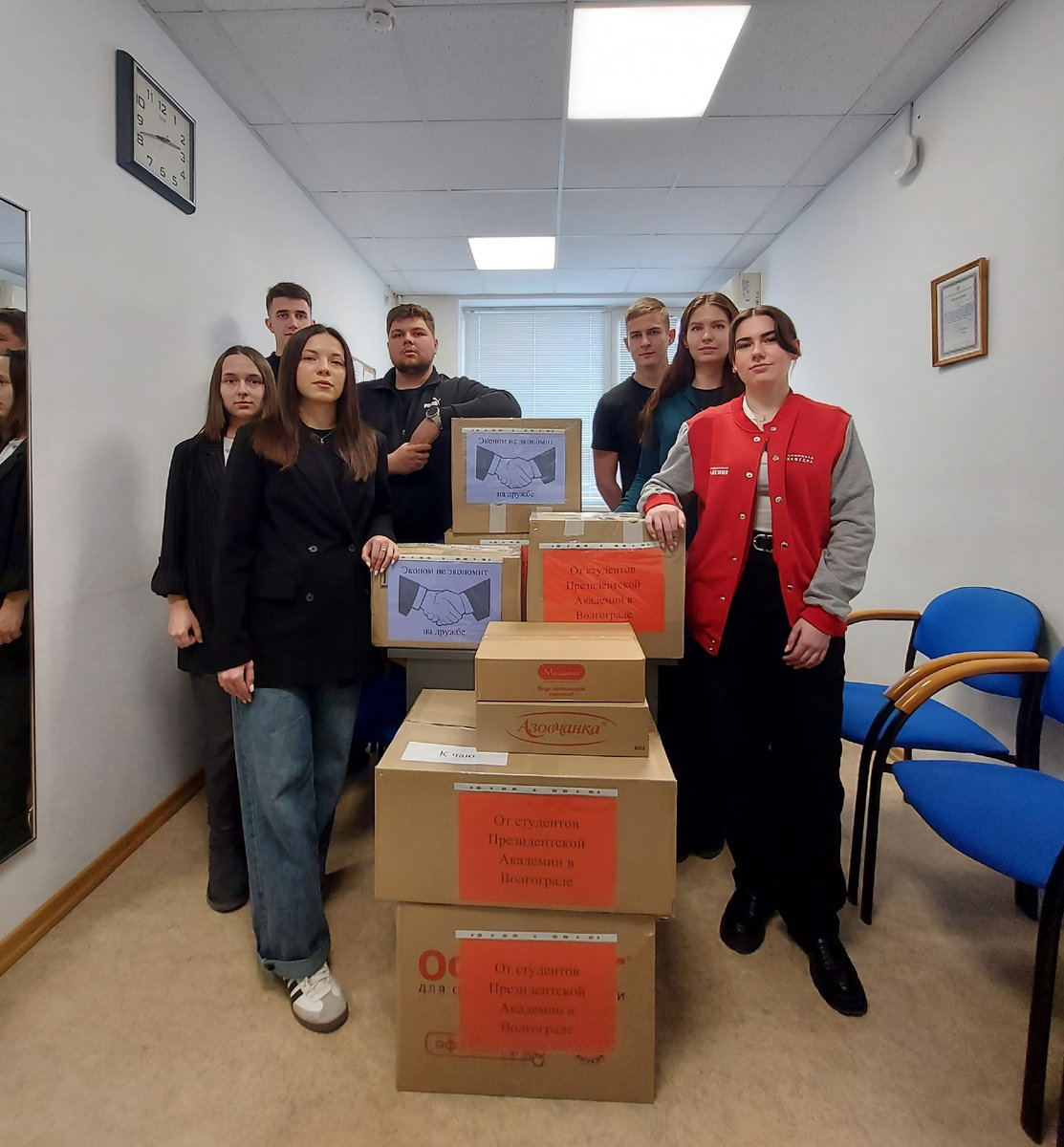 По мнению председателя студенческого совета Президентской Академии Фатеевой Елизаветы, это то малое, что сегодня может сделать каждый человек: «Думаю, что вложенная в посылки поддержка и вера укрепят дух наших Защитников и помогут им в преодолении трудностей».